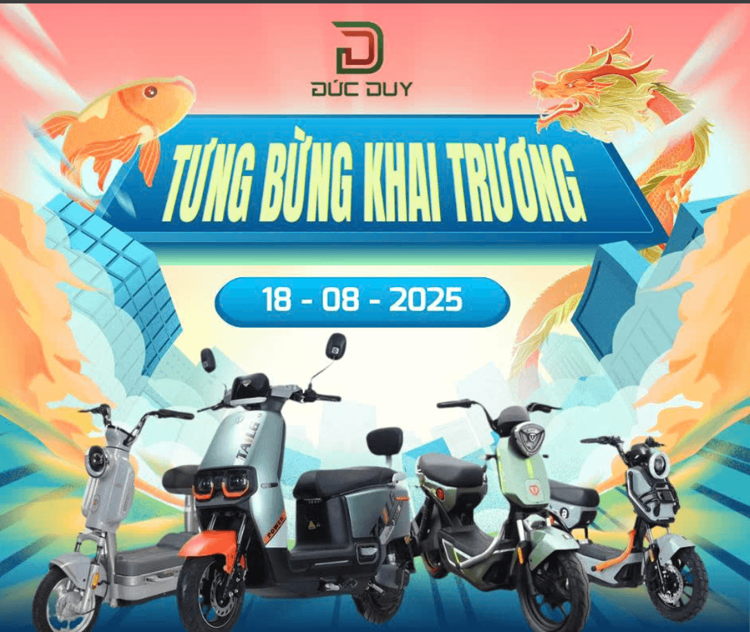 Xe Điện Đức Duy - Phân phối chính hãng Xe Máy Điện & Xe Đạp Điện TAILGTop 1 Đại lý Xe Điện uy tín - Giá tốt nhất thị trường - Trả góp 0%Bảo hành chính hãng 3 năm - Cứu hộ 24/7 - Giao hàng toàn quốcĐa dạng mẫu mã - Mới nhất 2026 - Cam kết chất lượng 100%